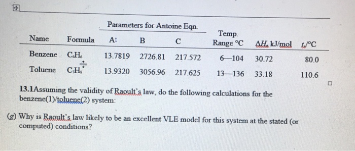 Solved Assuming The Validity Of Raoult S Law Do The Foll Chegg Com from media.cheggcdn.com [a to z of thermodynamics by pierre perrot. Raoult's law is a phenomenological law that assumes ideal behavior based on the simple microscopic assumption that intermolecular forces between unlike molecules are equal to those between similar molecules: Calculating vapor pressure using raoult's law (nonvolatile solute). …statement of this condition is raoult's law, which is valid for many highly dilute solutions and for a limited class of concentrated solutions, namely, those in which the interactions between the molecules of solute and solvent are the same as those between the molecules of each substance by itself. Jan 15, 2020 13:01 ist. As a result, adding more components to a solution decreases each partial vapor pressure because. You will recall that all gases approach ideal behavior as their pressures approach zero. What are the limitations of raoult's law.